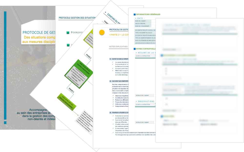 En exemple, la gestion des conflits; une restructuration organisationnelle; l’amélioration des outils de prévention dans le cas d'accidents du travail; la refonte de certains protocoles et processus etc.